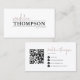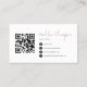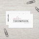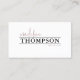 The design of this business card is clean, minimalistic, and professional. It features a white background with a combination of elegant cursive and bold serif fonts. The cursive text is positioned above the bold text, adding a soft and artistic touch. A horizontal line separates the main text, contributing to a balanced layout. The card uses a muted colour palette, including black and a mauve tone. The overall aesthetic emphasises simplicity and sophistication.