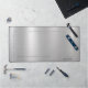 Elegant metallic silver grey texture brushed aluminium look, tin shiny silver frame, and a custom monogram in black modern script typography.