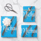 Minimalistic modern monogram initial name blue wrapping paper sheet