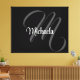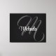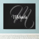 Minimalistic modern monogram initial name black white. Personalizable custom name with a cursive initial behind on a black colour.
