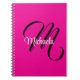 Minimalistic modern monogram initial name black white. Personalizable custom name with a cursive initial behind on a hot pink colour.