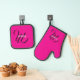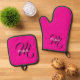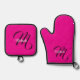 Minimalistic modern monogram initial name hot pink oven mitt & pot holder set
