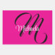 Minimalistic modern monogram initial name black white. Personalizable custom name with a cursive initial behind on a hot pink colour.