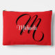 Minimalistic modern monogram initial name black white. Personalizable custom name with a cursive initial behind on a red colour.