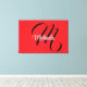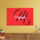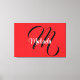Minimalistic modern monogram initial name black white. Personalizable custom name with a cursive initial behind on a red colour.