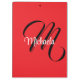 Minimalistic modern monogram initial name black white. Personalizable custom name with a cursive initial behind on a red colour.