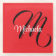 Minimalistic modern monogram initial name red glass coaster