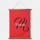Minimalistic modern monogram initial name black white. Personalizable custom name with a cursive initial behind on a red colour.