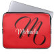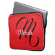 Minimalistic modern monogram initial name black white. Personalizable custom name with a cursive initial behind on a red colour.