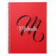 Minimalistic modern monogram initial name black white. Personalizable custom name with a cursive initial behind on a red colour.