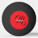 Minimalistic modern monogram initial name black white. Personalizable custom name with a cursive initial behind on a red colour.