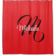 Minimalistic modern monogram initial name red shower curtain