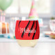 Minimalistic modern monogram initial name black white. Personalizable custom name with a cursive initial behind on a red colour.