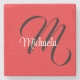 Minimalistic modern monogram initial name red stone coaster