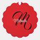 Minimalistic modern monogram initial name black white. Personalizable custom name with a cursive initial behind on a red colour.