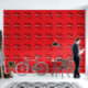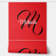 Minimalistic modern monogram initial name black white. Personalizable custom name with a cursive initial behind on a red colour.