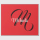 Minimalistic modern monogram initial name black white. Personalizable custom name with a cursive initial behind on a red colour.