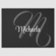 Minimalistic modern monogram initial name black white. Personalizable custom name with a cursive initial behind on a black colour.