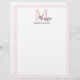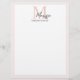 Minimalistic Monogram Initial & Name Pastel Pink Custom Letterhead
