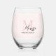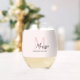 Minimalistic Monogram Initial & Name Pastel Pink Stemless Wine Glass