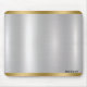 Elegant metallic silver texture, brushed aluminium look with gold border accents—customisable typography in black.