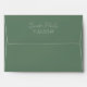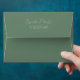 Whimsical minimalistic modern, sage green background, customisable white script calligraphy, elegant wedding envelope design. The sage green background with customisable white typography evokes a feel of classic elegance.