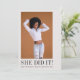 Photo announcement and add details to the back for an invitation to celebrate. open full editor to unmask and move photos or add/remove a black and white filter etc.