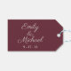 Wedding favour tags feature your names in a lively script. The back has space for a personal message