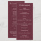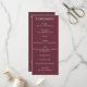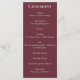 A chic and modern program card with a velvety plum background. The title appears in a lively script and details appear in a restrained and sophisticated serif font.
