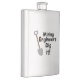 The product is a good size and came exactly as it was pictured. The lid is not attached to the flask, which could be dangerous on drunken nights... The print came out surprisingly well and looks very sharp. Would definitely recommend.