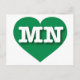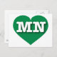 This card features an eco-friendly green heart containing the bold, white, upper case letters MN, the official abbreviation for Minnesota, the north star state. The card is blank inside, awaiting your customised text or handwritten sentiments.