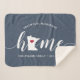 Show some home state pride with this cute rustic blue throw blanket featuring "home" in white calligraphy script lettering with a silhouette map of the state of Minnesota standing in for the letter "O." A red heart illustration inside the state map completes the design; you can change the position of the heart to your home city by opening the design tool and dragging the heart shape to your favourite spot. Personalise with your home city, family name and year established to create a perfect and memorable housewarming gift or addition to your new home.