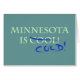 A funny design that reads Minnesota is cool! and cool is crossed out and replaced, in blue ink, by the word cold! Everyone knows Minnesota has tough winters with lots of snow and freezing temperatures, but it's also an eclectic place with nature, beautiful cities, a lively music scene, and 10,000 lakes.