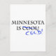A funny design that reads Minnesota is cool! and cool is crossed out and replaced, in blue ink, by the word cold! Everyone knows Minnesota has tough winters with lots of snow and freezing temperatures, but it's also an eclectic place with nature, beautiful cities, a lively music scene, and 10,000 lakes.
