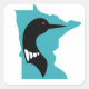 The loon, the state bird of Minnesota, in front of an outline of the state of MN.