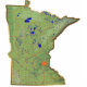 This magnet, shaped like the state of Minnesota, displays a relief map of the state surrounded by a gold effect border. Minnesotan decor for your fridge.