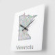 Minnesota map square wall clock