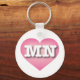 This key chain features a pink heart with a white-washed center overlaid by the capital letters MN, the official abbreviation for Minnesota, the north star state.