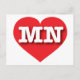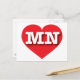 This postcard features a vibrant red heart containing the bold, white, upper case letters MN, the official abbreviation for Minnesota, the North Star state. The reverse side of the card is blank, awaiting your customised text or handwritten sentiments.