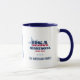 Minnesota personalised mug. Celebrate Minnesota's year of statehood in 1858 with a bold typography design featuring the stars and stripes in red, white, and blue, and a light blue star. Personalise this mug with your name on the left and right and in the centre with your monogram initial. Another idea would be to personalise it with your city's name and initial.