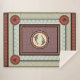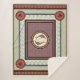 This blanket is more than just comfort; it's a magnificent piece of textile art, drawing inspiration from the grand, sophisticated geometric patterns and vibrant colour palettes of the Minoan civilisation on Crete, circa 2000 BCE. The central design is reminiscent of a ceremonial shield or a complex palace floor plan, featuring striking terracotta red, sky blue, cream, and black borders. Notice the small Octopus motifs in the corner squares—a creature sacred to the Minoans, a powerful thalassocracy who ruled the sea!