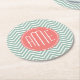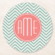 Mint and Coral Chevrons Custom Monogram Round Paper Coaster
