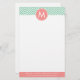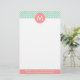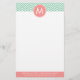 Mint and Coral Chevrons with Custom Monogram Stationery