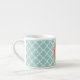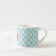 Mint and Coral Quatrefoil with Custom Monogram Espresso Cup