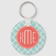Mint and Coral Quatrefoil with Custom Monogram Key Ring