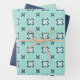 Mint and Dark Blue Interwoven Flower Pattern Wrapping Paper Sheet