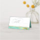 An elegant place card for your wedding reception, banquet or special affair, this contemporary style design features a border of a mint and faux gold foil veined marble pattern with space to hand write your table numbers and guest names. The back of the place card has an optional message that can be edited with your desired text or deleted if you prefer to leave the text blank.