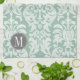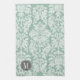 Mint and Grey Damask Pattern Custom Monogram Tea Towel