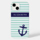 Mint and Navy Nautical Stripes Anchor Monogram Case-Mate iPhone Case