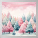Mint and Pink Fir Trees Winter Scene Poster